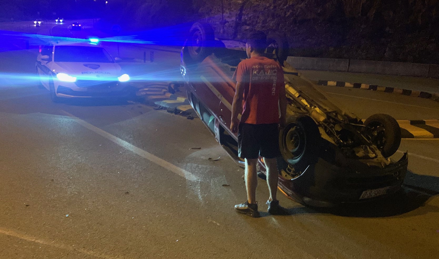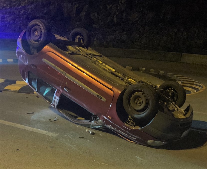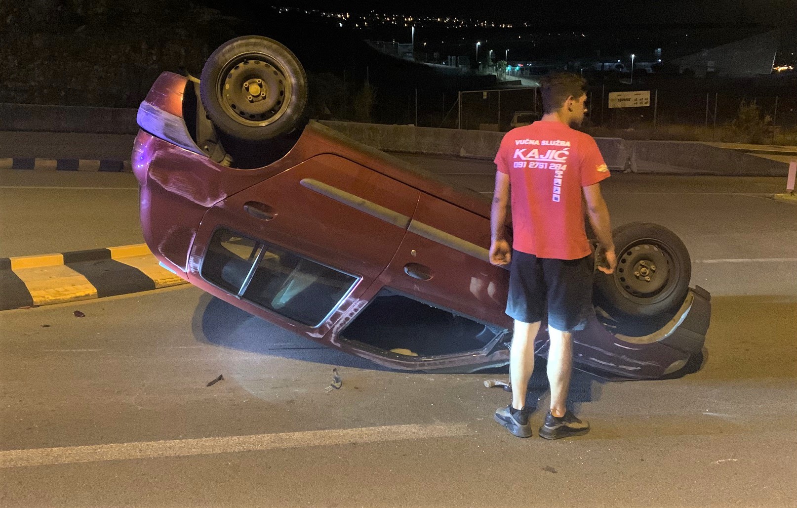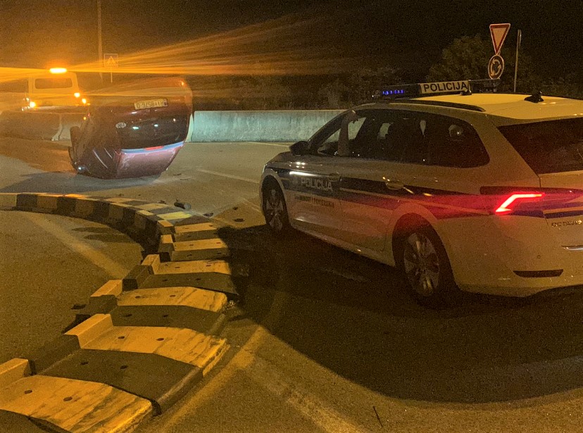 Auto na krovu na rotoru kod stadiona na Rujevici