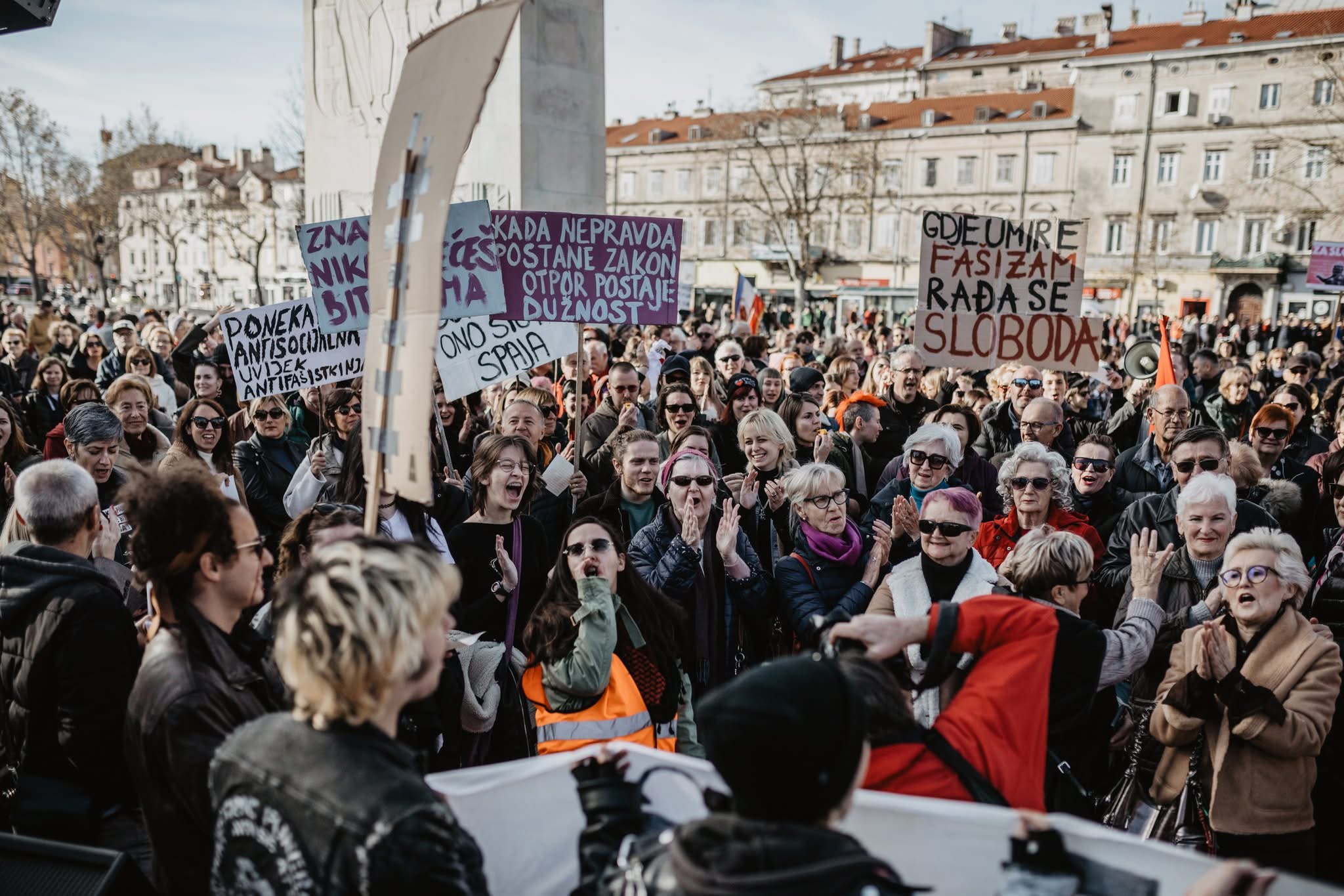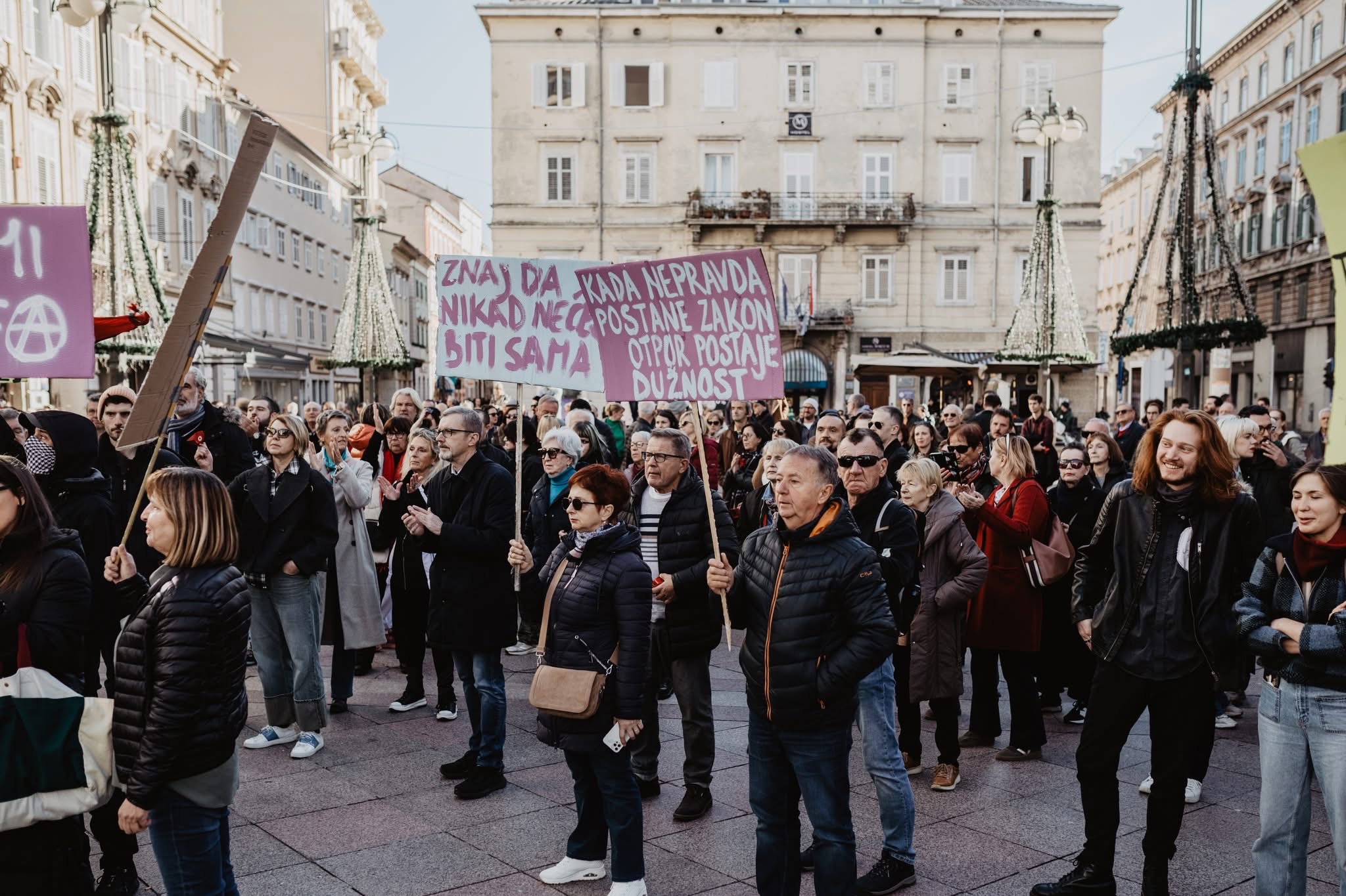 “Građani i građanke Rijeke jučer su pokazali ujedinjenost i hrabrost poručivši da neće šutjeti na toleriranje fašizma, agresivne postupke i mržnju koja truje čitavo društvo. UABA Rijeka, koja je, uz inicijative “Građanke i građani Rijeke” te “Dodirni mi koljena”, bila u organizaciji okupljanja, najoštrije osuđuje incidente koji su se dogodili na Jadranskom trgu i na terasi kafića Štriga. Bacanje petardi među građane s djecom, okupljene na mirnom prosvjednom skupu, i bacanje zapaljenih baklji na ljude na terasi kafića, predstavljaju direktne napade s ciljem ugrožavanja života.